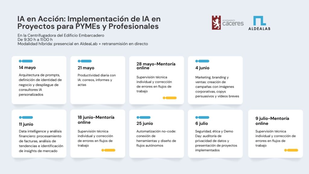 Se trata, en definitiva, de ofrecer un acercamiento aplicado, comprensible y conectado con necesidades concretas. No tanto desde la idea de “estar al día”, sino desde la utilidad real que estas herramientas pueden tener para mejorar procesos, organizar tareas, generar ideas, optimizar tiempo o explorar nuevas oportunidades.